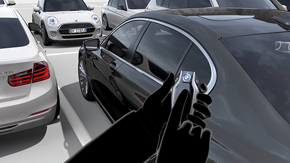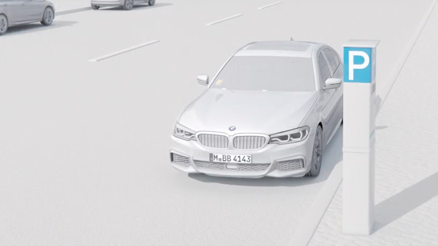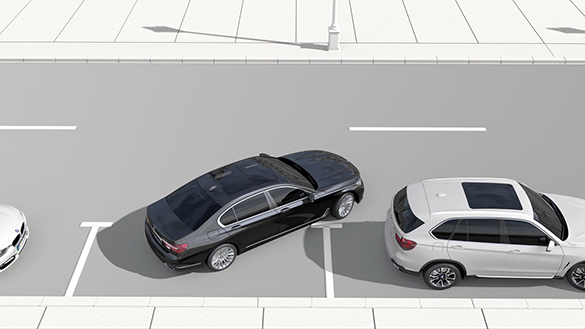 The Remote Control Parking function allows the driver to conveniently hop out of the vehicle before parking it via remote control by moving it forward into, or reversing out of, a tight parking space or garage. The driver activates the remote-controlled parking function from outside the vehicle via the BMW display key.