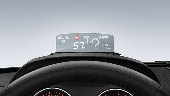 O BMW Head-Up Display a cores projeta todas as informações relevantes diretamente no campo de visão do condutor, permitindo-lhe concentrar-se totalmente na condução. São projetadas no ecrã informações como a velocidade, indicações do sistema de navegação, limite de velocidade com proibição de ultrapassagem, listagens telefónicas e de entretenimento.