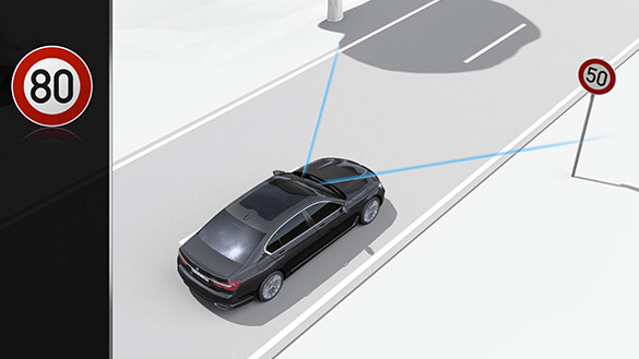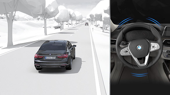 When not using automatic driving mode, the driver is supported by the Lane keeping assistant with active side collision protection, which actively intervenes in steering to avoid leaving the lane unintentionally, or colliding with objects to the side of the vehicle. If Approach control warning is activated and a vehicle in front brakes, the BMW reacts immediately with warnings of increasing intensity, light braking and finally full braking.