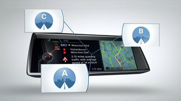 O sistema de navegação Professional oferece ao condutor um design completamente tridimensional, combinado com um conceito de utilização inovador e inúmeras funções para navegação, escritório e multimédia. A geração mais recente do sistema de navegação Professional, em combinação com controlador iDrive Touch, inclui a utilização suplementar do comando por voz ou por gestos, através do display sensível ao toque. Em combinação com o BMW ConnectedDrive são efetuadas atualizações automáticas dos mapas de navegação.