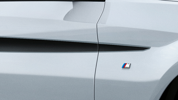 Caráter desportivo em toda a linha: as faixas de realce em preto/prata mate conferem ao seu BMW um caráter especialmente individual e dinâmico. O posicionamento sob a extremidade de refração da luz realça o design simultaneamente desportivo e elegante do seu BMW.