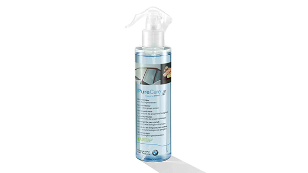 O limpa-vidros para todo o ano com extrato de gengibre bio faz parte da nova gama de tratamentos sustentáveis Pure Care inspired by BMW i. Contém ingredientes naturais e é eficaz a retirar até a sujidade mais persistente sem riscar a superfície dos vidros.